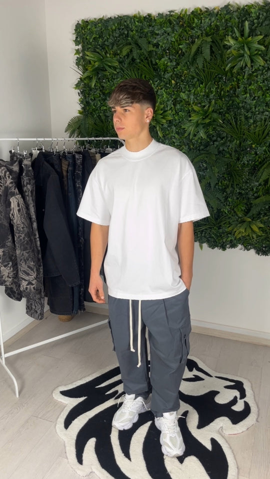 Questi cargo a fondo ampio in cotone hanno un fit over, perfetto per chi cerca comodità e stile in un unico capo. Disponibili in tre colorazioni classiche (nero, grigio e beige). Perfetti per qualsiasi occasione, sono adatti sia per outfit casual che streetwear. Con l'elastico in vita, si adattano perfettamente a diverse vestibilità.