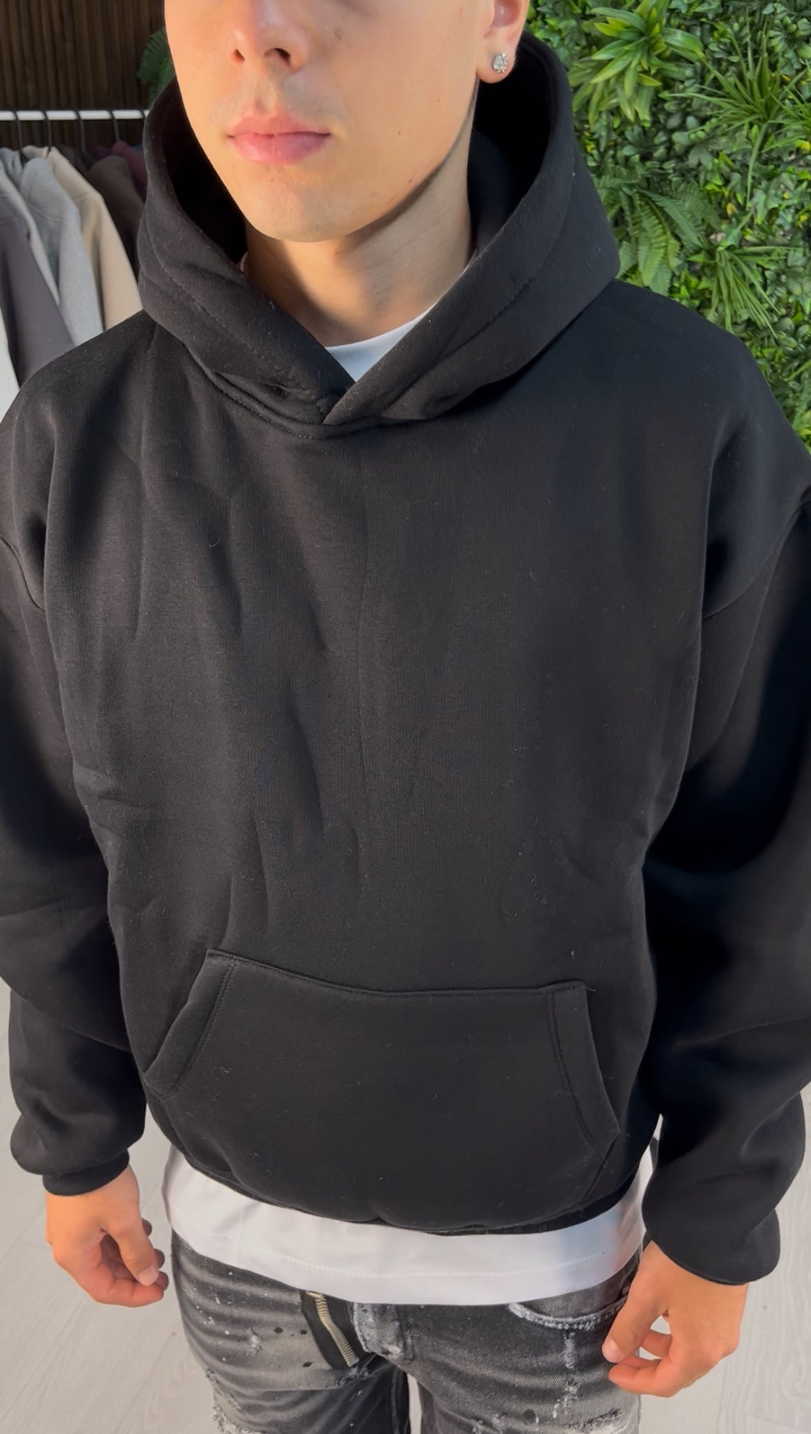 Le garçon sur la photo mesure 177 cm de haut de 73 kg et porte une taille L.